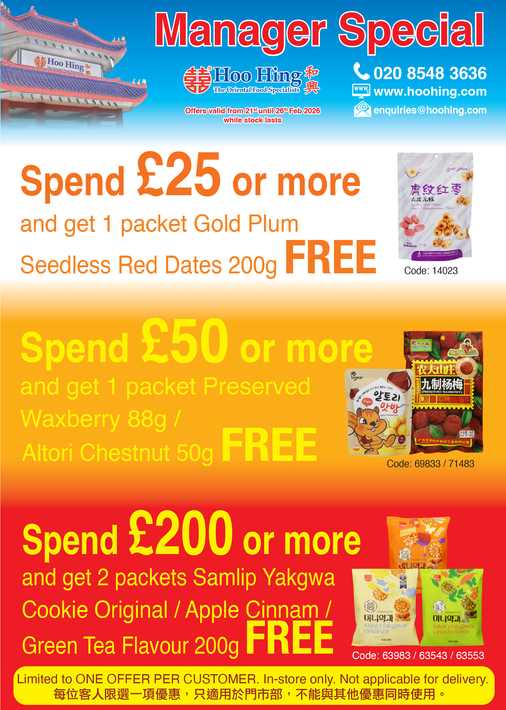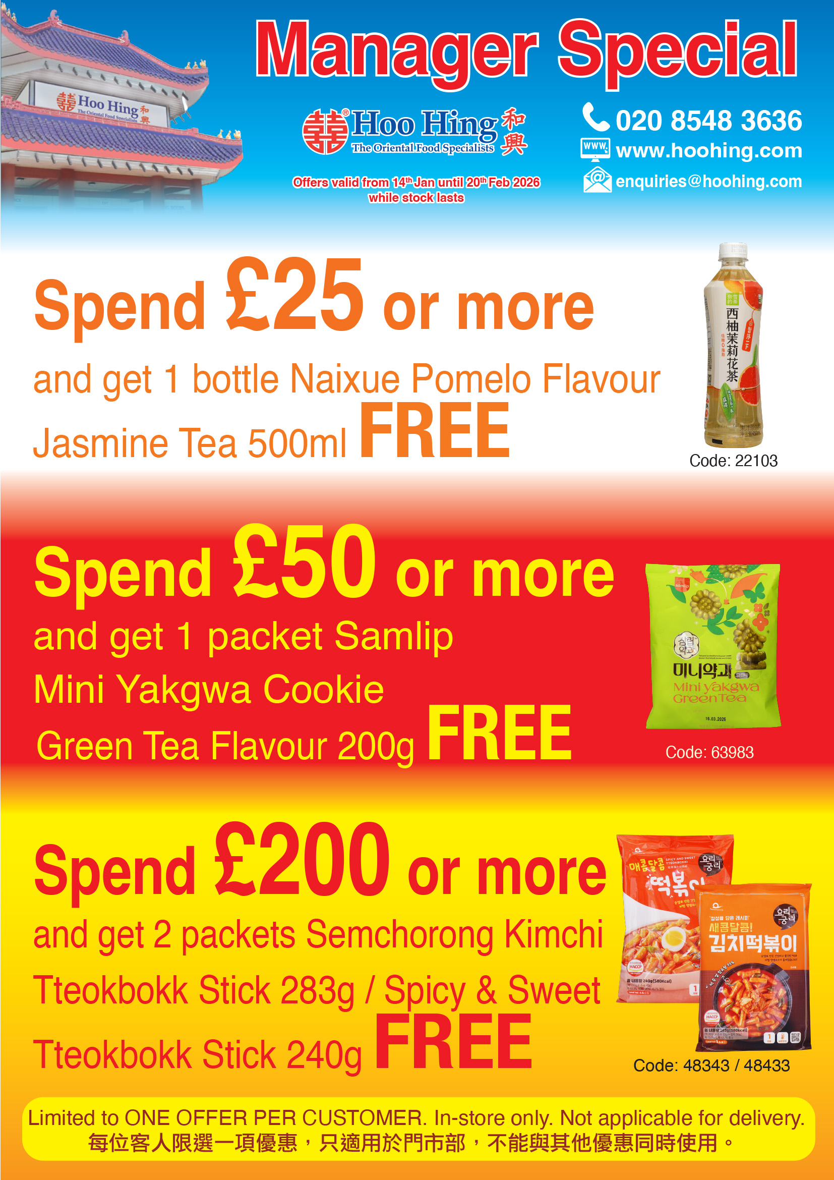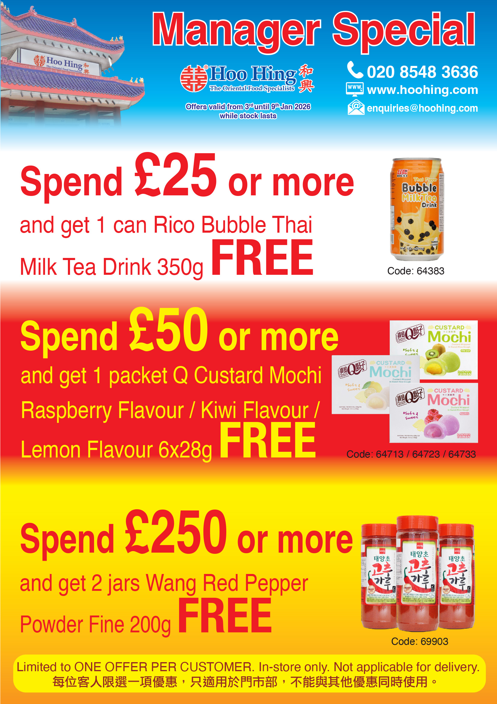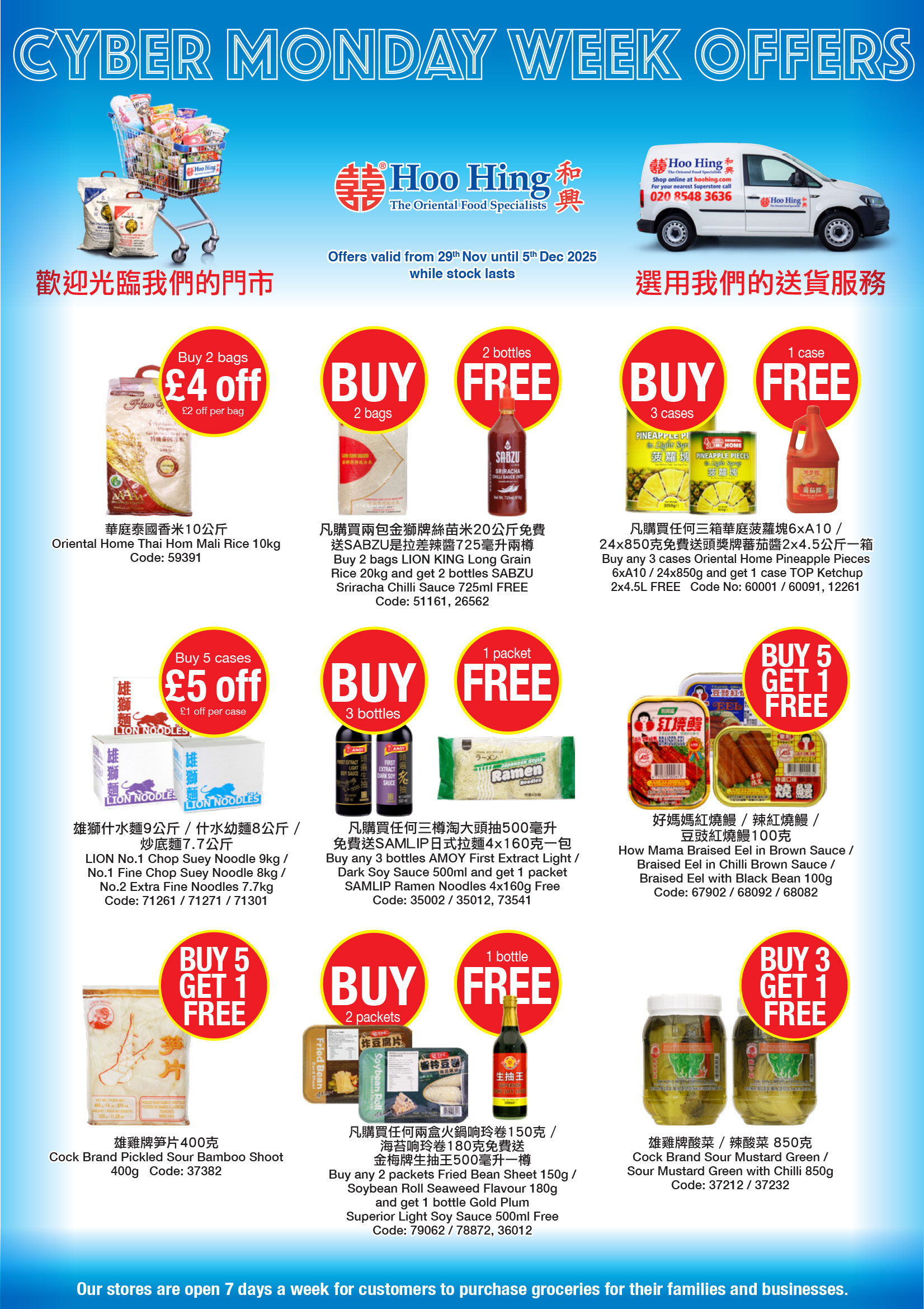 Customer Service Contact us: 020 8548 3636 Secure Payment Express Shipping Our stores are open 7 days a week for customers to purchase groceries for their families and businesses. Each store also offers a home delivery service within a 5-mile radius. Please call your local store to place your order or click on "Home Delivery" below for more details.For nationwide home delivery, our online store is available where products can be ordered and delivered to your home by a parcel carrier. Please click on "Shop Online" above to enter our online store or call 020 8548 3636 to place your order by phone. |