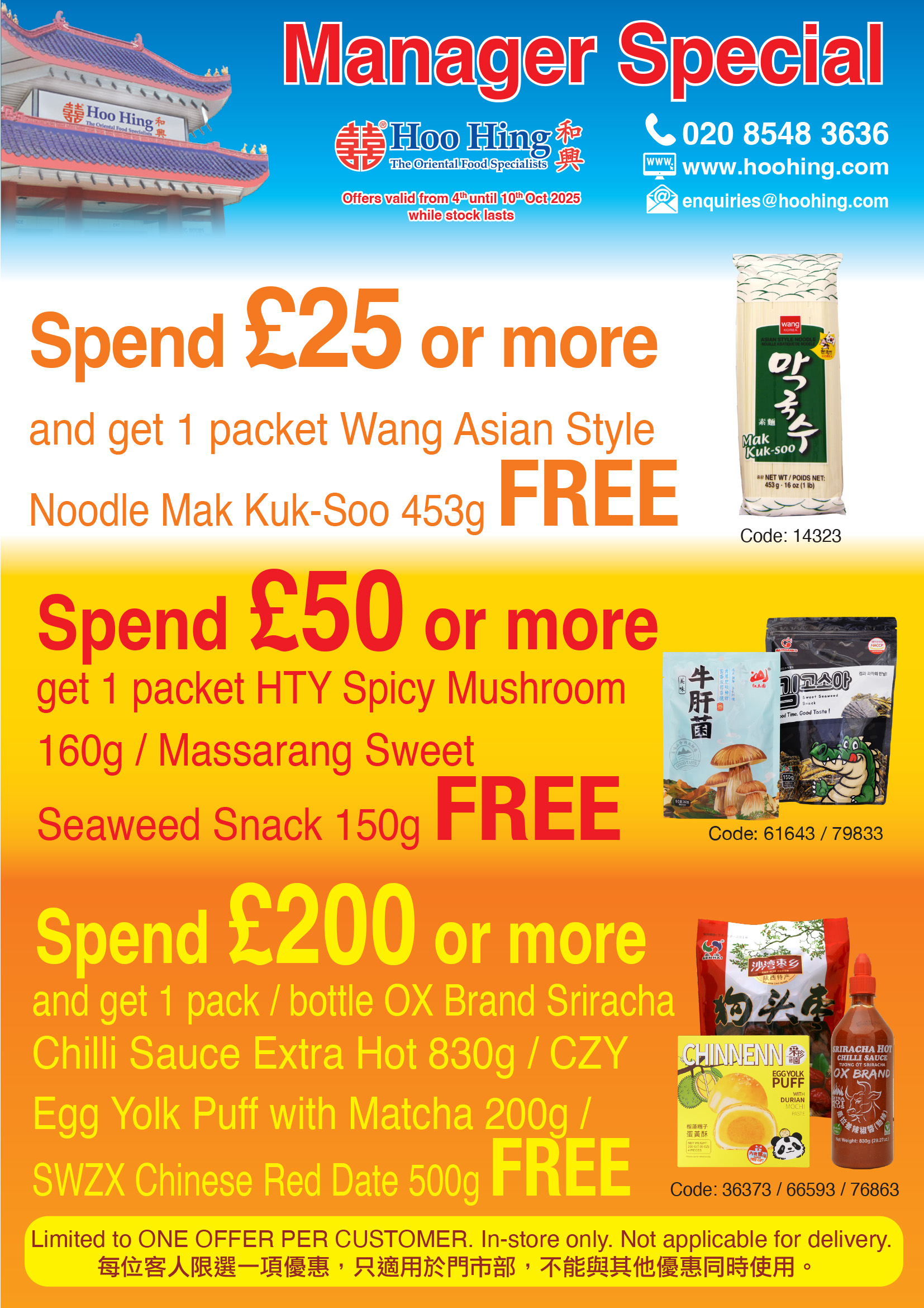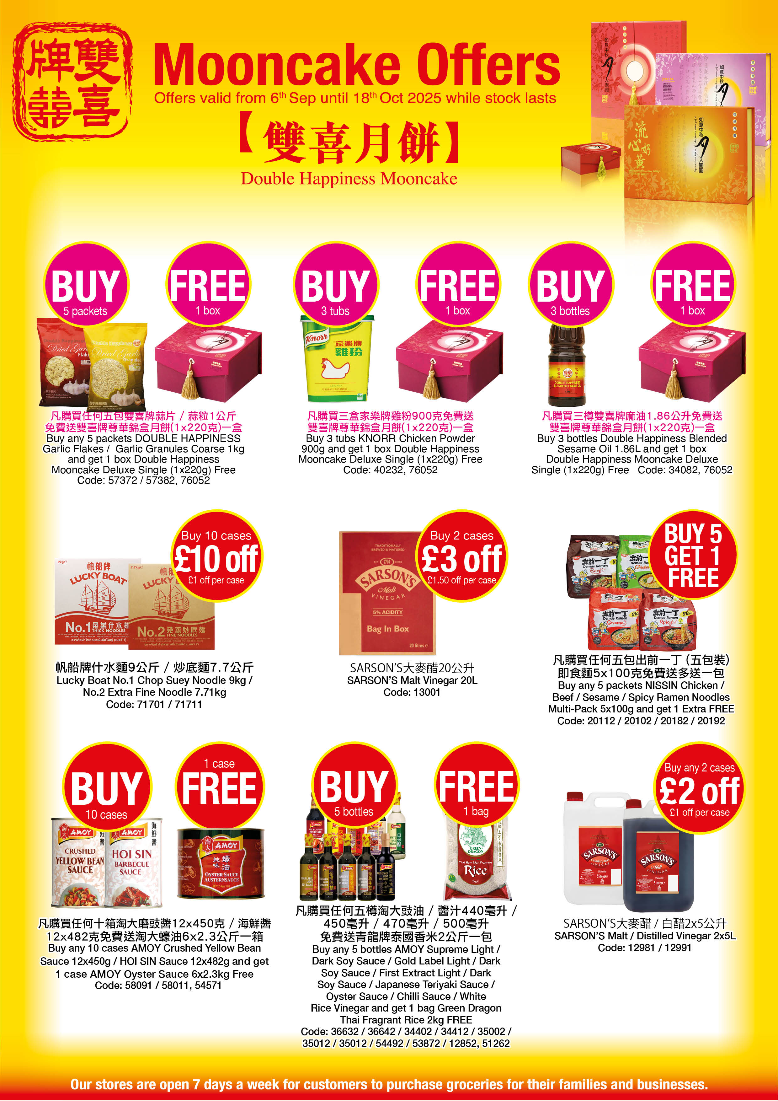 ![]() Customer Service Contact us: 020 8548 3636 ![]() Secure Payment ![]() Express Shipping Our stores are open 7 days a week for customers to purchase groceries for their families and businesses. Each store also offers a home delivery service within a 5-mile radius. Please call your local store to place your order or click on "Home Delivery" below for more details.For nationwide home delivery, our online store is available where products can be ordered and delivered to your home by a parcel carrier. Please click on "Shop Online" above to enter our online store or call 020 8548 3636 to place your order by phone. |